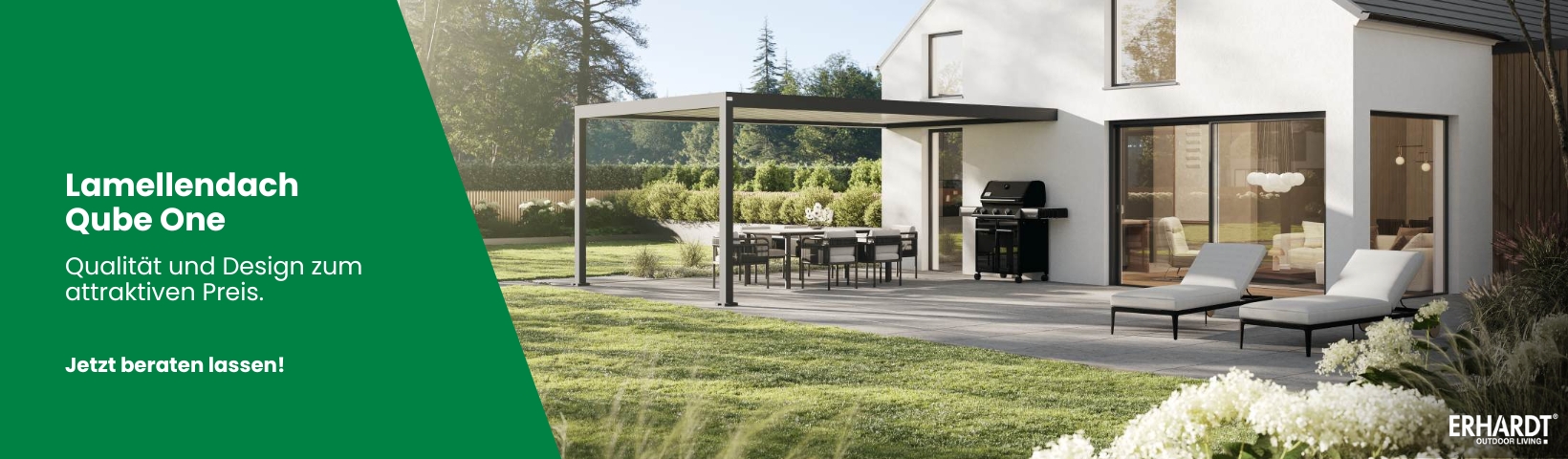 Mit dem Qube One gewinnen Sie zusätzlichen Wohnraum im Freien. Ob Frühstück im Sonnenschein, gemütlicher Abend mit Freunden oder entspanntes Lesen im Schatten – Ihr Außenbereich wird zu einem echten Rückzugsort.